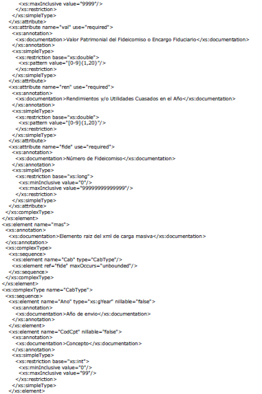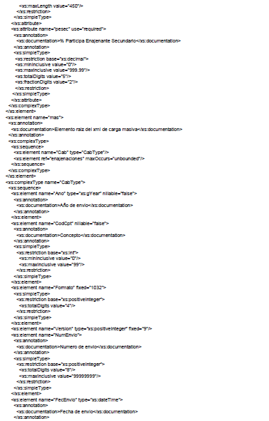 A continuación se incluye el esquema XSD para esta especificación técnica.