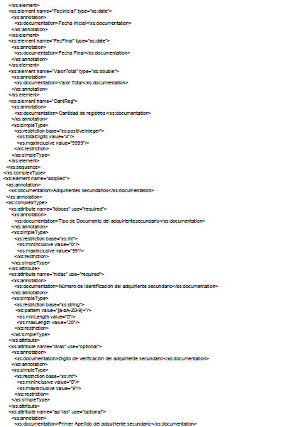 | nidas | Número de identificación del adquiriente secundario | string | 20 | Diligenciar sin guiones, puntos, comas o espacios en blanco. Siempre debe diligenciarse |