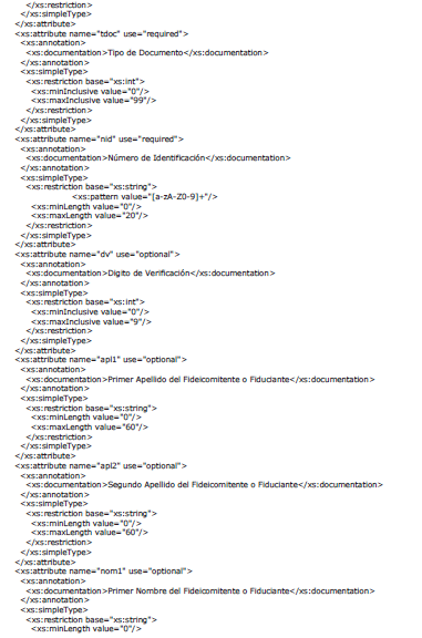 | nom2 | Otros Nombres del Fideicomitente o Fiduciante | String | 60 | En caso de ser una Persona Natural y si se conoce debe diligenciarse |