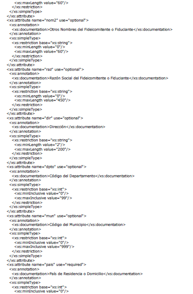 | raz | Razón Social del Fideicomitente o Fiduciante | String | 450 | En caso de ser una Persona Natural siempre debe diligenciarse |