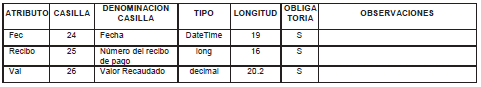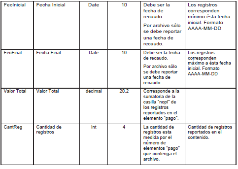 Elo contenido del archivo viene en el elemento "pago" y debe incluir los siguientes datos:
