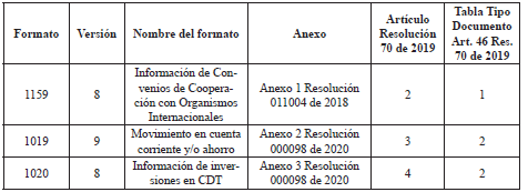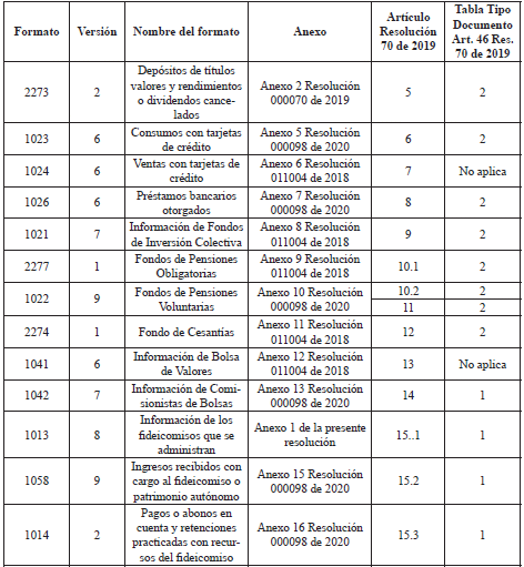 La información a que se refiere este artículo deberá ser suministrada en el Formato 1019, Versión 9.