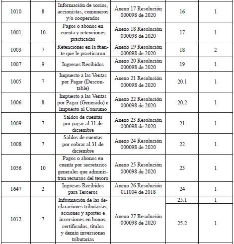<Tabla modificada por el artículo 12 de la Resolución 23 de 2021. El nuevo texto es el siguiente: