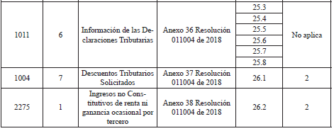 Para diligenciar la casilla de tipo de documento del tercero, se deben utilizar las siguientes tablas