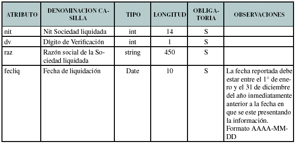 Definir las características y contenido de los archivos, donde se reporta la Sociedades liquidadas.
