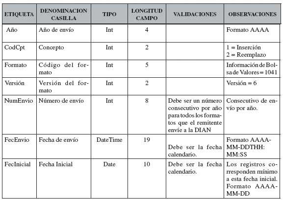Definir las características y contenido de los archivos, donde se reporta la Información de Bolsa de Valores.