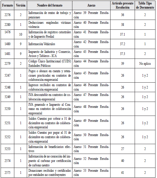 La información a que se refiere este artículo deberá ser suministrada en el Formato 1019, Versión 9.