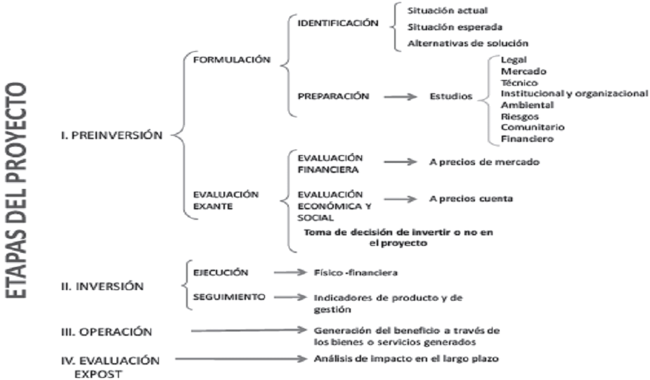 El proyecto de inversión se desarrolla en 4 etapas a través del siguiente ciclo: