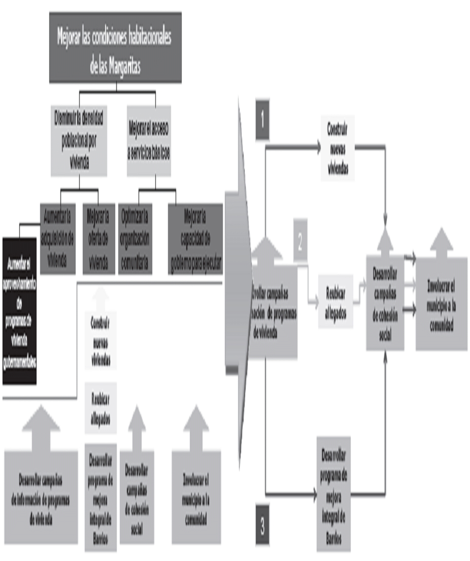 Surgen del análisis de objetivos, identificando las acciones que se deben adelantar para lograr los objetivos específicos que son los que conllevan al cumplimiento del objetivo central. La combinación de dichas acciones son las que constituyen las alternativas de solución.