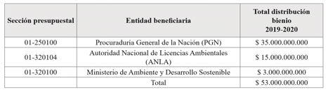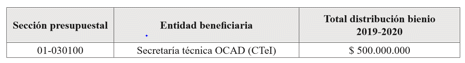| Sección presupuestal | Entidad beneficiaria | Total distribución bienio 2019-2020 |
