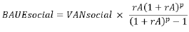 Si los estudios han determinado que un proyecto arroja un VAN positivo, entonces se determina el Beneficio Anual Uniforme Equivalente (BAUE) o beneficio anual por ejecutar el proyecto, de acuerdo con la siguiente fórmula: