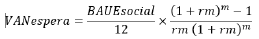Finalmente, el ajuste en el costo por la espera determinada se calcula como: el VAN de espera mensual por el número de meses de retraso, de acuerdo con la siguiente fórmula: