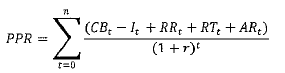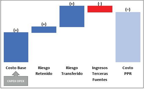 En la estimación del PPR se deben incorporar todos los costos y riesgos en los que tendría que incurrir la entidad pública para realizar el proyecto bajo esta modalidad de contratación por obra pública tradicional. El PPR está compuesto por los siguientes conceptos: