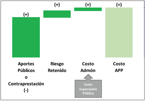 | Costos de administración y supervisión del contrato de APP | Corresponden a los costos en los que incurre la entidad pública para la estructuración, administración, seguimiento, monitoreo y gestión del contrato o contratos que implementan el proyecto, incluyendo los costos de interventorías, siempre y cuando estos costos no estén incluidos dentro del modelo financiero del proyecto. |