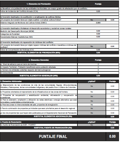 SISTEMA DE EVALUACIÓN POR PUNTAJES DE PROYECTOS DE INVERSIÓN QUE TENGAN POR OBJETO LA IMPLEMENTACIÓN DEL ACUERDO FINAL (SEP-PAZ).
