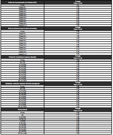 | Reparación de víctimas del conflicto | Puntaje Fase I, II y III |