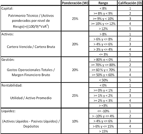 Las ponderaciones y rangos que operan para la calificación de la entidad, se detallan en el cuadro anterior del numeral 1 del presente artículo.