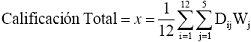 La calificación total de la entidad está determinada por la suma ponderada de la calificación promedio mensual de cada uno de los indicadores.