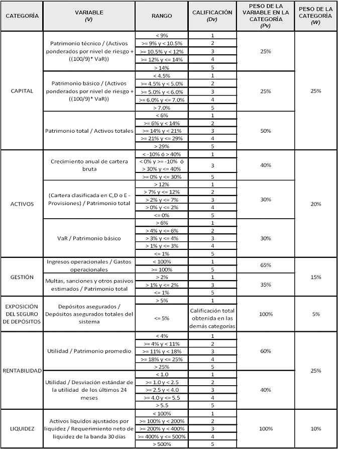 PARÁGRAFO 2o. En caso que no sea posible calcular alguna de las variables, dada su inexistencia o porque el denominador de alguna razón sea cero, la misma se entenderá matemáticamente inexistente y, por lo tanto, se procederá a distribuir en forma proporcional la ponderación de la variable faltante entre las variables existentes de la categoría (capital, activos, gestión, exposición del Seguro de Depósitos, rentabilidad y liquidez). Así mismo, en el evento en que no se pueda calcular ninguna variable de alguna categoría, su ponderador se distribuirá proporcionalmente entre las demás categorías de la calificación.