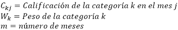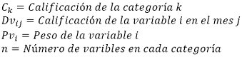 La calificación mensual de cada categoría está determinada por la suma ponderada de las variables que la componen.