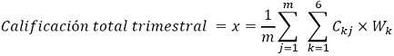 La calificación total trimestral se aproximará a dos decimales.