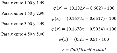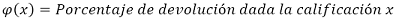 2. El porcentaje de devolución que se aplicará al valor total de las primas pagadas, durante el trimestre evaluado, se calculará aplicando la siguiente fórmula, según corresponda, a la calificación trimestral obtenida por la entidad: