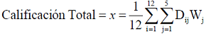 Dij = Calificación del mes i del indicador j