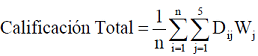 | Ponderación (W) | Rango | Calificación (D) | |