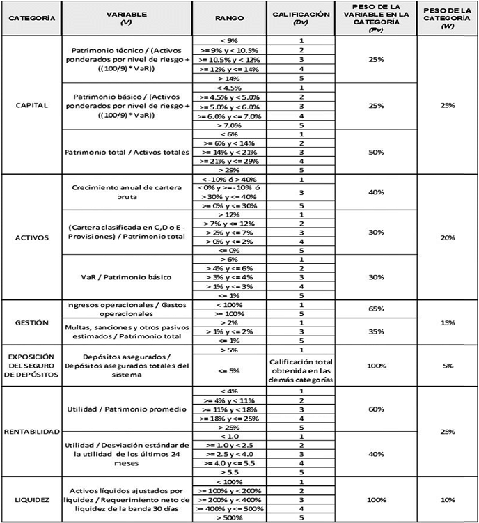 PARÁGRAFO 2o. En caso de que no sea posible calcular alguna de las variables, dada su inexistencia o porque el denominador de alguna razón sea cero, la misma se entenderá matemáticamente inexistente y, por lo tanto, se procederá a distribuir en forma proporcional la ponderación de la variable faltante entre las variables existentes de la categoría (capital, activos, gestión, exposición del seguro de depósitos, rentabilidad y liquidez). Así mismo, en el evento en que no se pueda calcular ninguna variable de alguna categoría, su ponderador se distribuirá proporcionalmente entre las demás categorías de la calificación.