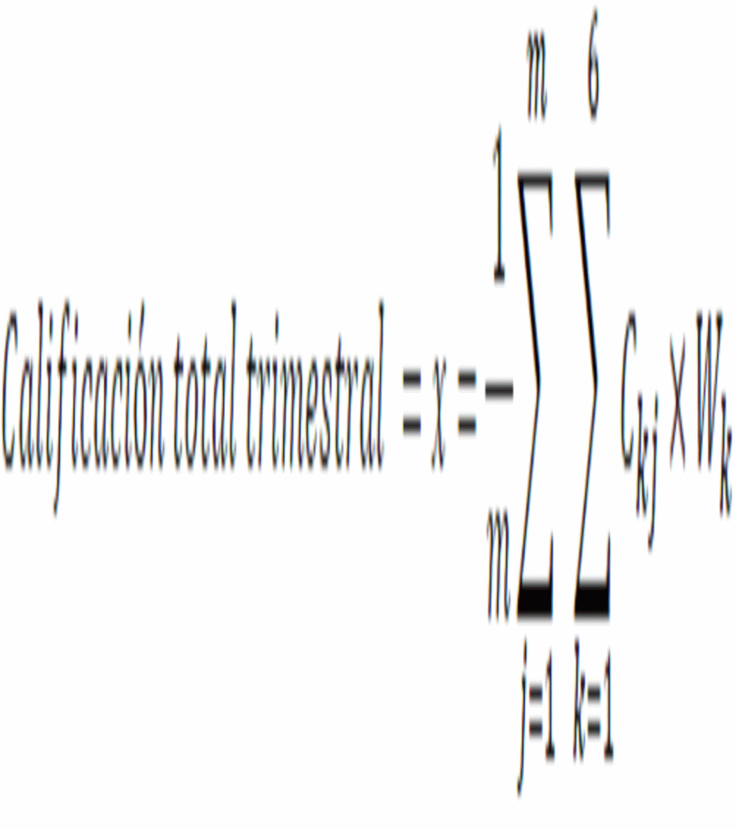 La calificación trimestral de cada entidad está determinada por el promedio trimestral de la suma ponderada de las calificaciones mensuales de todas las categorías que componen la calificación.
