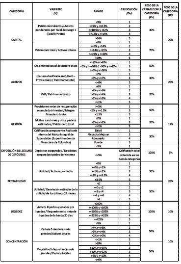 La calificación mensual de cada categoría está determinada por la suma ponderada de las variables que la componen.