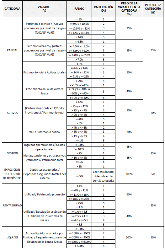 PARÁGRAFO 2. En el caso que no sea posible calcular alguna de las variables, dada su inexistencia o porque el denominador de alguna razón sea cero, la misma se entenderá matemáticamente inexistente y, por lo tanto, se procederá a distribuir en forma proporcional la ponderación de la variable faltante entre las variables existentes de la categoría (capital, activos, gestión, exposición del seguro de depósitos, rentabilidad y liquidez). Así mismo, en el evento en que no se pueda calcular ninguna variable de alguna categoría, su ponderador se distribuirá proporcionalmente entre las demás categorías de la calificación.