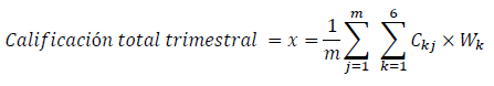 La calificación trimestral de cada entidad está determinada por el promedio trimestral de la suma ponderada de las calificaciones mensuales de todas las categorías que componen la calificación.