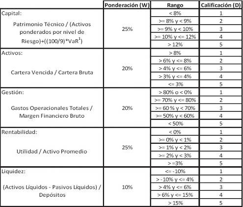 Las ponderaciones y rangos que operan para la calificación de la entidad, se detallan en el cuadro anterior del numeral 1 del presente artículo.