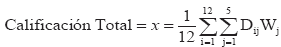 4ijD = Calificación del mes i del indicador j