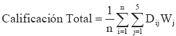 5 jW = Ponderación del indicador j
