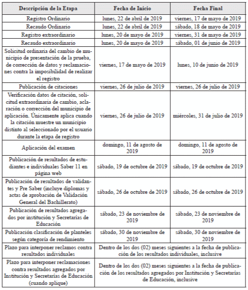 Por la cual se modifica el calendario de los exámenes Saber 11, Pre Saber y Validación contenidos en la Resolución número 165 de 2019.