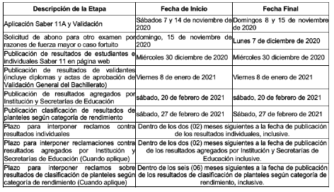 “2. EXAMEN SABER 11, Y VALIDACIÓN. CALENDARIO A