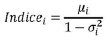 5. Con posterioridad, se obtendrá el índice de cada una de las 5 pruebas del examen Saber 11 para cada establecimiento y sede, el cual se calcula de forma independiente. Estos índices se construyen ordenando los puntajes de mayor a menor para así obtener las frecuencias relativas acumuladas de los estudiantes asociados a cada uno de los puntajes en la escala de cero (0) a cien (100). El índice se generará al dividir el promedio de las frecuencias acumuladas por uno (1) menos la varianza de dichas frecuencias esto es: