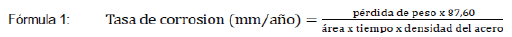 PARÁGRAFO. El cálculo de la tasa de corrosión se realiza utilizando la formula 1.