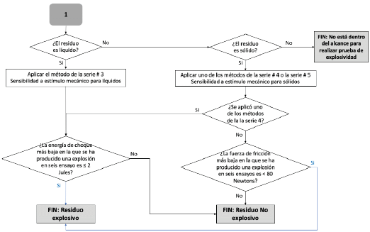 “Se considera que un residuo (o mezcla de residuos) es explosivo cuando en estado sólido o líquido de manera espontánea, por reacción química, puede desprender gases a una temperatura, presión y velocidad tales que puedan ocasionar daño a la salud humana y/o al ambiente, y además presenta cualquiera de las siguientes propiedades: