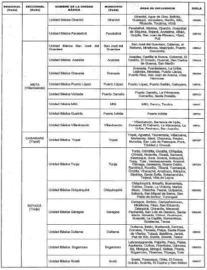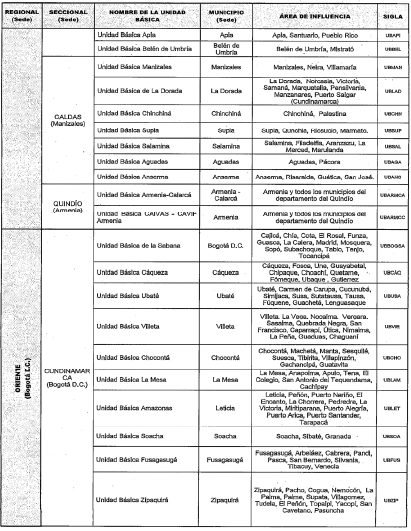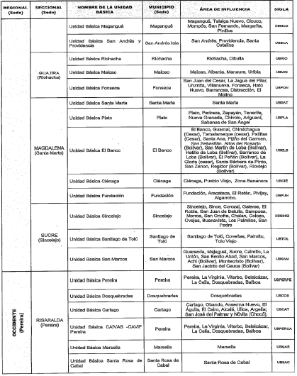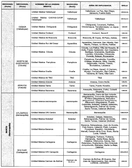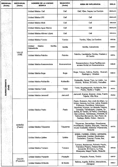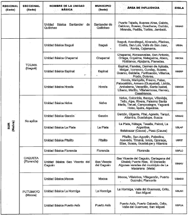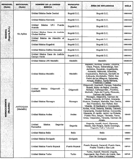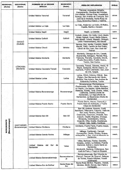 PARÁGRAFO. Algunos municipios aparecen en el área de influencia de dos Unidades Básicas porque reciben diferentes servicios, sea en clínica o patología forense.