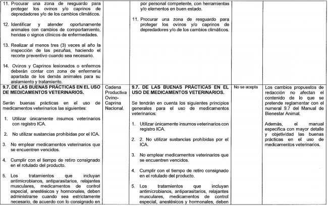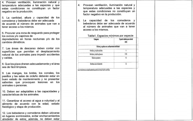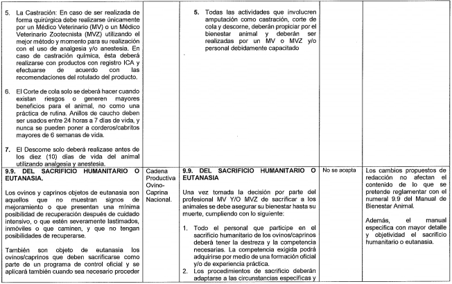 - De acuerdo a las mesas de trabajo con los Gremios, Academias e Instituciones Públicas y Privadas se hace necesario la implementación de las condiciones de Bienestar Animal para las especies Équidas, Porcinas, Ovinas y Caprinas, y una vez aprobadas las demás condiciones de bienestar animal para las demás especies de producción del sector agropecuario, se procederá a incluirlas en el Manual que se adopta.