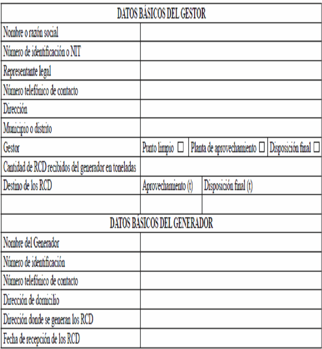 - Artículo modificado por el artículo 4 de la Resolución 1257 de 2021, 'por la cual se modifica la Resolución 0472 de 2017 sobre la gestión integral de Residuos de Construcción y Demolición (RCD) y se adoptan otras disposiciones', publicada en el Diario Oficial No. 51.867 de 23 de noviembre de 2021. |