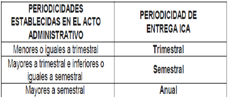Para los casos en donde la periodicidad definida en el instrumento de manejo y control ambiental para la presentación de los Informes de Cumplimiento Ambiental (ICA) sea diferente a una periodicidad anual, semestral o trimestral, se deberá ajustar a lo siguiente: