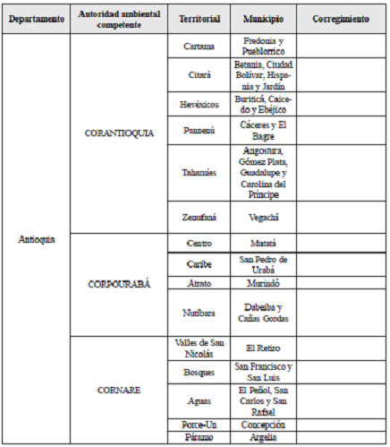 Incluye el listado de los departamentos y municipios con sede territorial de las autoridades ambientales competentes, que de acuerdo con los Informes Trimestrales de TIC por departamento, generados por el Ministerio de Tecnologías de la Información y las Comunicaciones, tienen menos de 1.5 megas de ancho de banda en subida(3), y que por tanto tendrían dificultades con el cargue de la información en la Ventanilla Integral de Trámites Ambientales en Línea, VITAL.