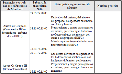 Que el Protocolo de Montreal para dar aplicación a la disposición contenida en el artículo 2G, estableció la total eliminación del consumo de las sustancias listadas en el Grupo II del Anexo C (compuestos Hidrobromofluorocarbonados – HBFC) a partir de enero de 1996;