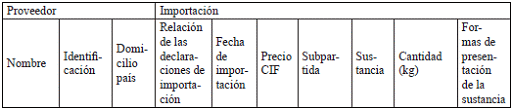- Cantidad, sustancia y uso, precio CIF y de venta al detal.