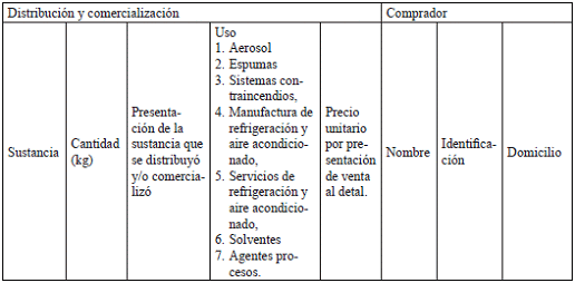 - Relación de los proveedores y compradores que incluya nombre, identificación, domicilio, cantidad de cada sustancia y sector de uso de cada sustancia.