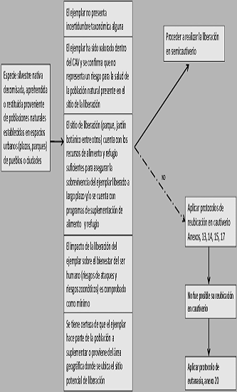 -- Protocolos de rehabilitación acorde con los requerimientos del Grupo taxonómico a trabajar y las disposiciones señaladas en la materia por el Ministerio de Ambiente, Vivienda y Desarrollo Territorial.